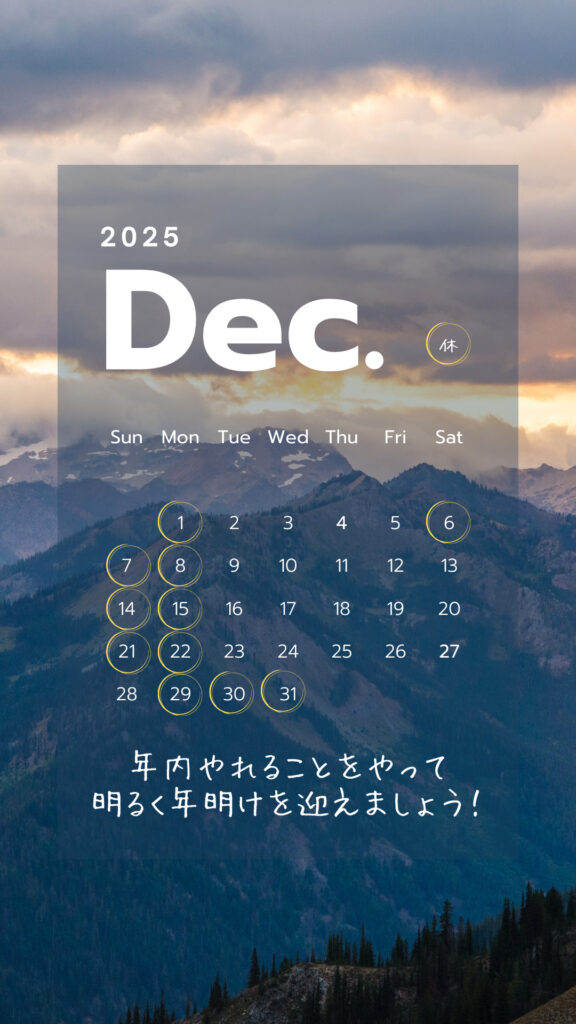 体調も気を付けながら楽しい1ヶ月を過ごして新年を迎えましょう!